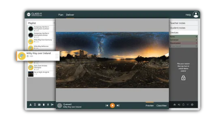 Tek bir tıklamayla VR deneyimini tüm başlıklara gönderebilir ya da öğrencilerin